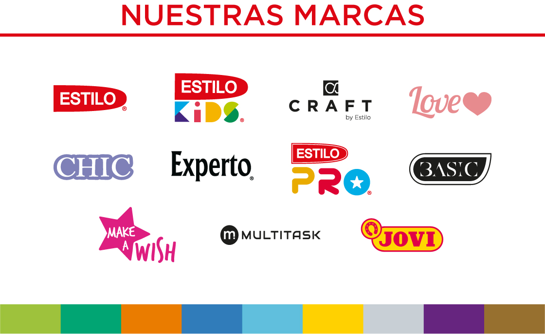 Fabricantes y dinámicos importadores, nos acompañan marcas reconocidas a nivel nacional e internacional como lo son Estilo, Estilo Kids, Craft, Love, Experto, Jovi, y más.